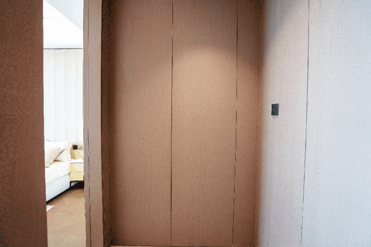第三个飘窗则是“躲藏收纳王者”,电视布景墙则用云纹白金沙石材!